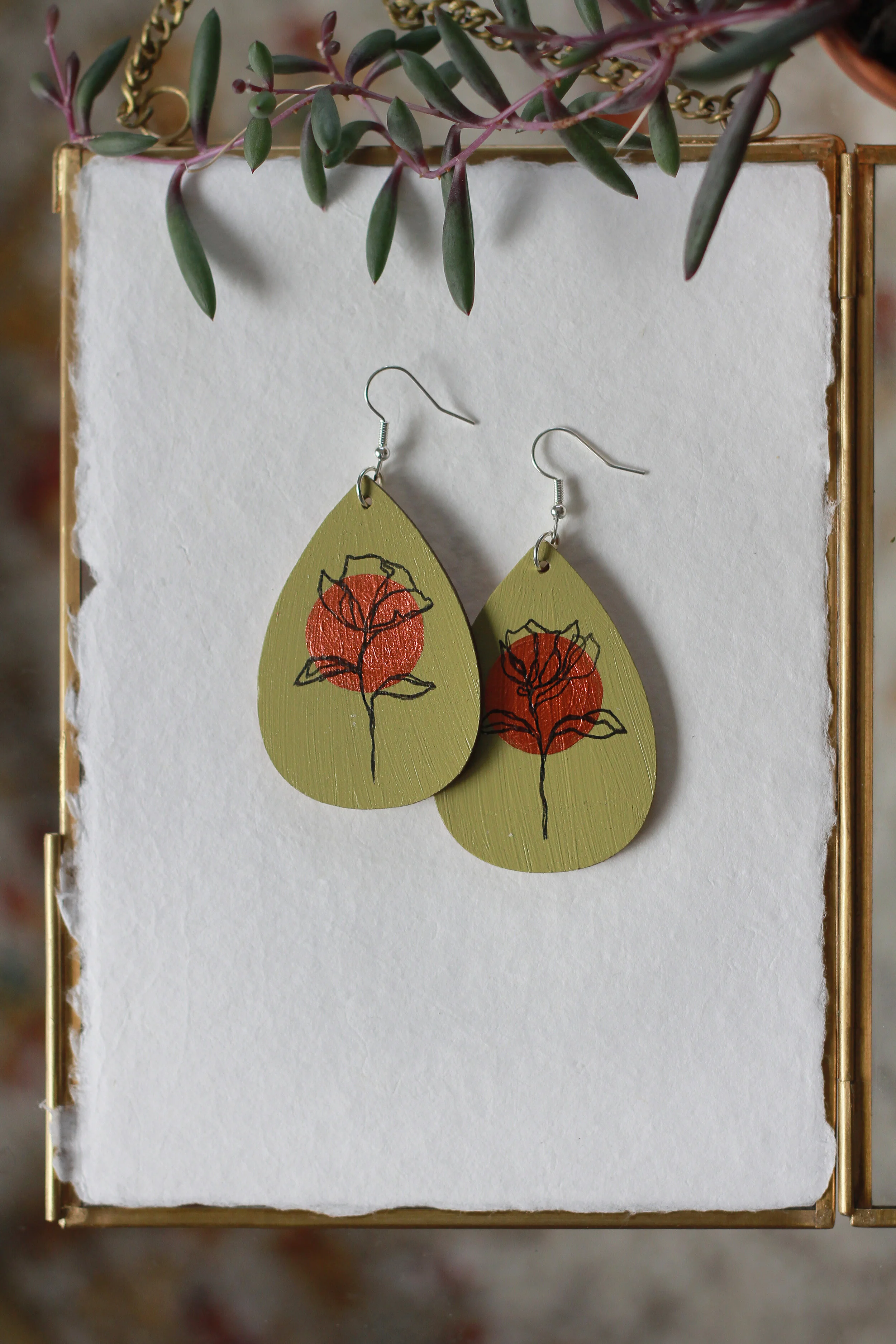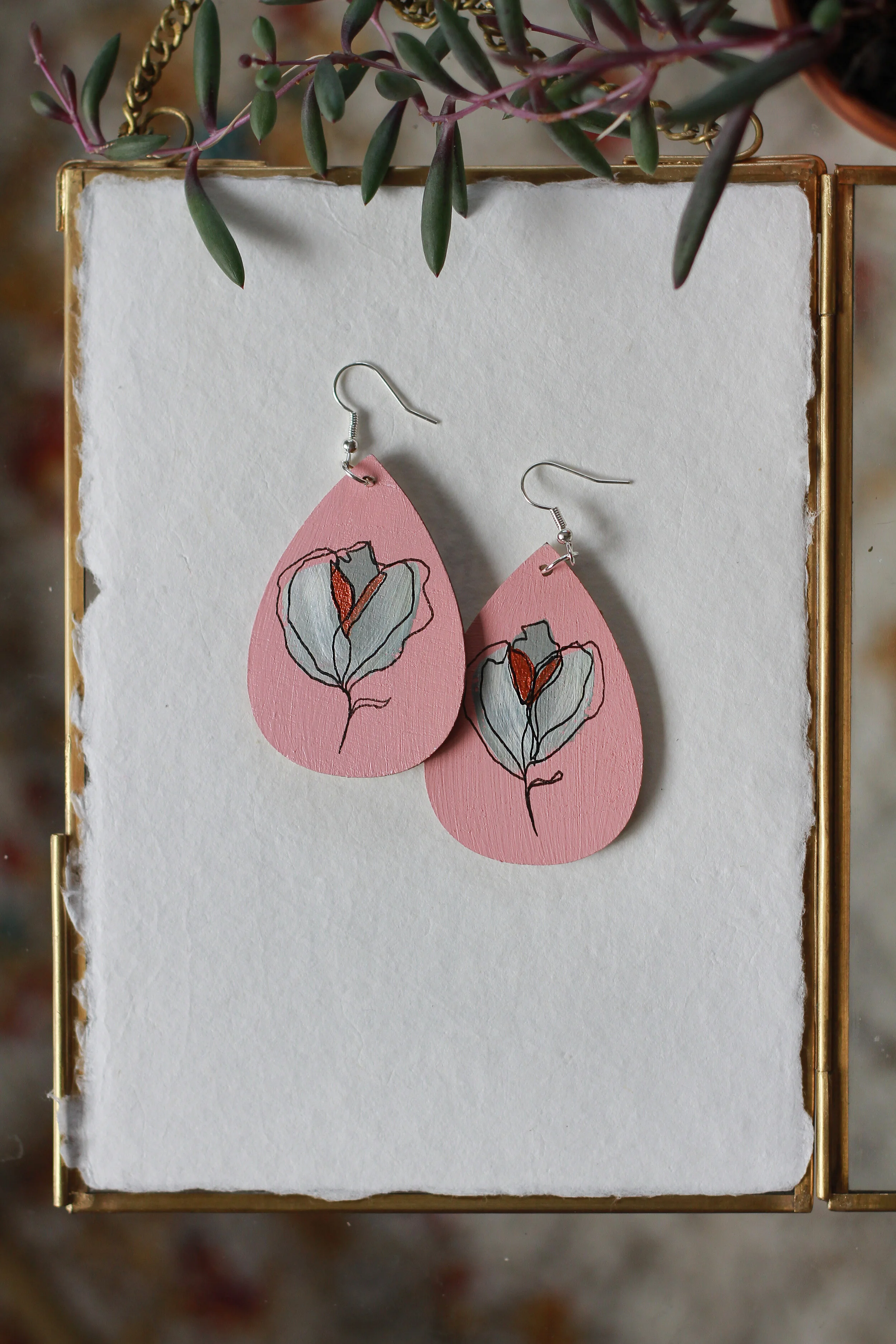 These earrings are inspired by my contour flowers and botanicals as well as the colors I feel when summer and fall merge into colder nights and warm days. My hope is that when you wear these earrings the day feels special. They are perfect for slow days in pjs or when you finally get to go out to dinner. Everyday is a good day to wear beautiful earrings.